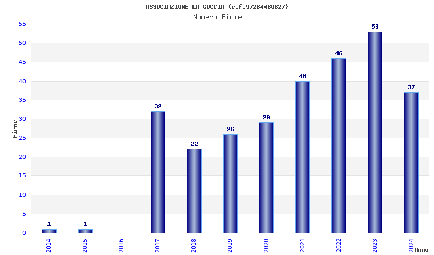 | Anno | Firme | Importi | Media | Naz. | Reg. | Prov. | Comu. |