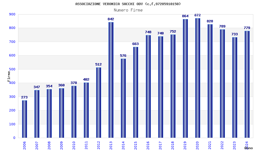 | Anno | Firme | Importi | Media | Naz. | Reg. | Prov. | Comu. |