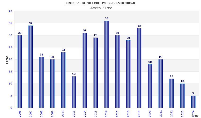 Anno Firme Importi Media Naz. Reg. Prov. Comu.