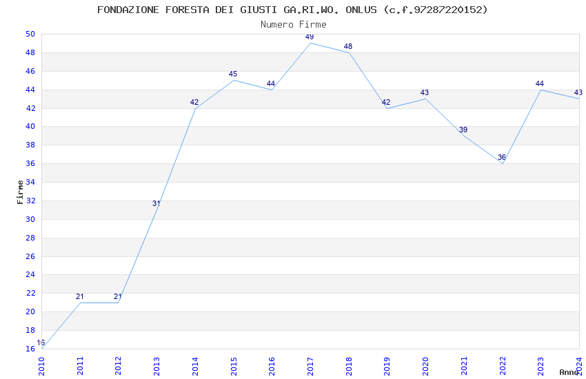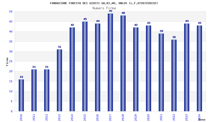 | 2020 | 43 | 10.385,28 | 241,52 | 5.013 | 1.221 | 597 | 443 |