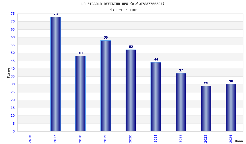 | 2017 | 73 | 2.734,03 | 37,45 | 18.789 | 1.112 | 281 | 194 |