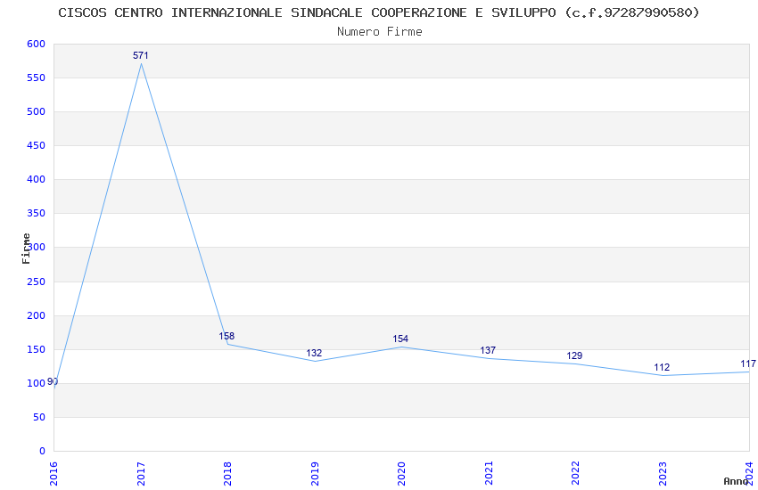 | Anno | Firme | Importi | Media | Naz. | Reg. | Prov. | Comu. |