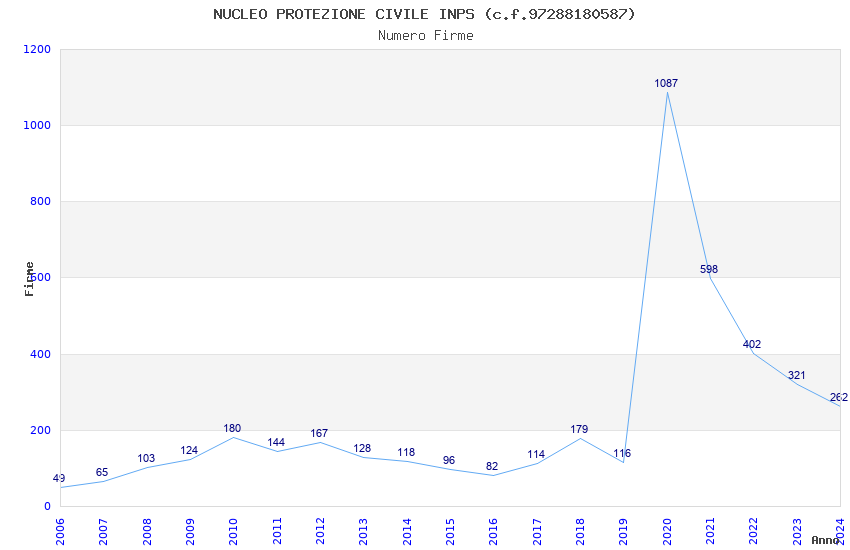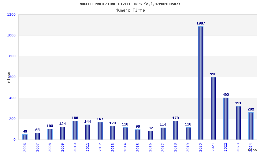 | Anno | Firme | Importi | Media | Naz. | Reg. | Prov. | Comu. |