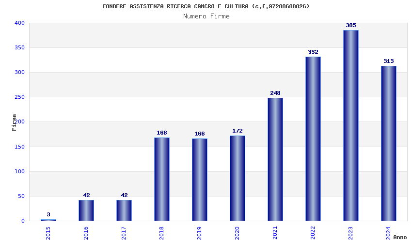 | Anno | Firme | Importi | Media | Naz. | Reg. | Prov. | Comu. |