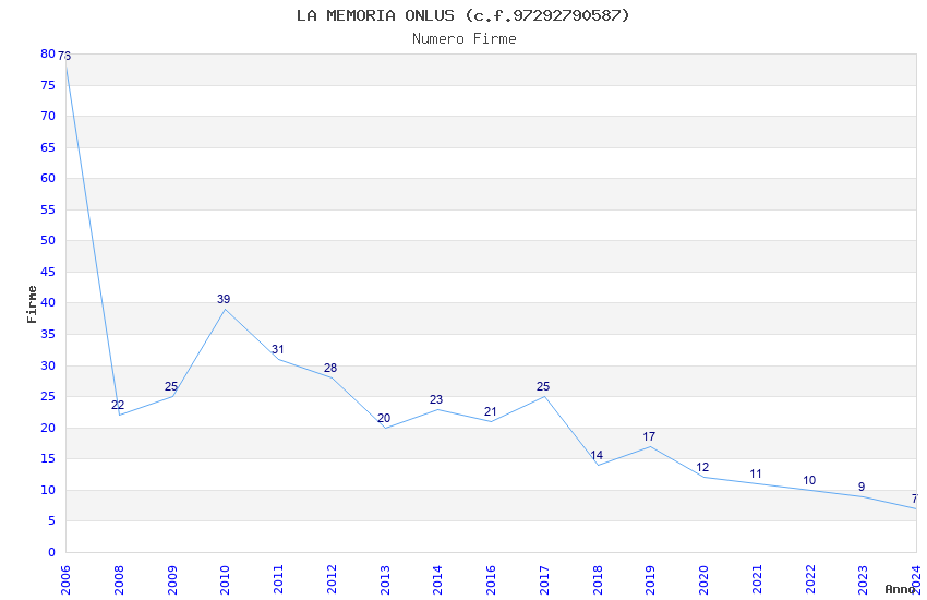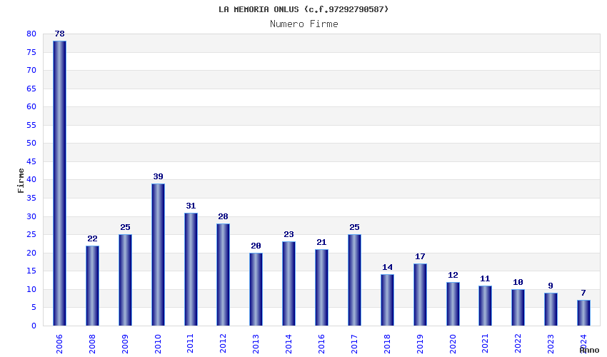 | Anno | Firme | Importi | Media | Naz. | Reg. | Prov. | Comu. |