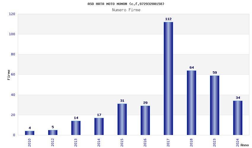 | Anno | Firme | Importi | Media | Naz. | Reg. | Prov. | Comu. |