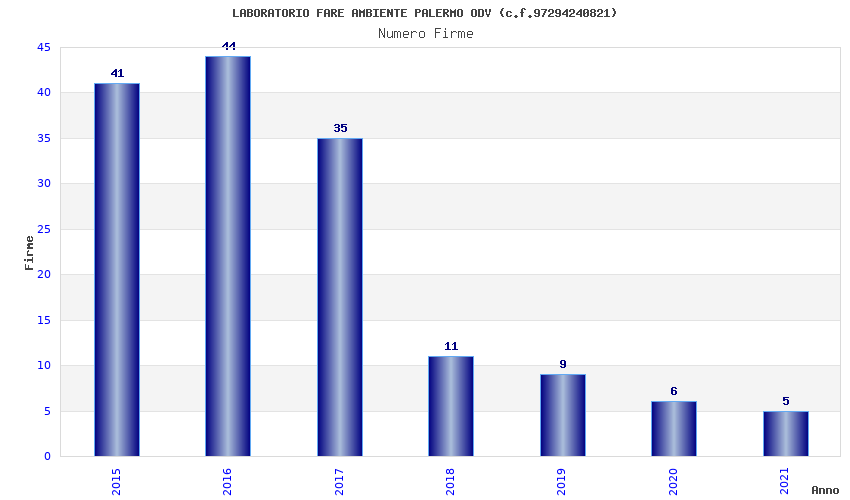 | Anno | Firme | Importi | Media | Naz. | Reg. | Prov. | Comu. |