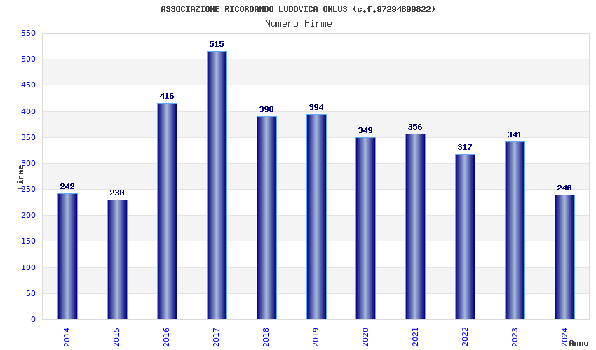 | Anno | Firme | Importi | Media | Naz. | Reg. | Prov. | Comu. |