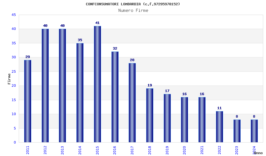 Anno Firme Importi Media Naz. Reg. Prov. Comu.