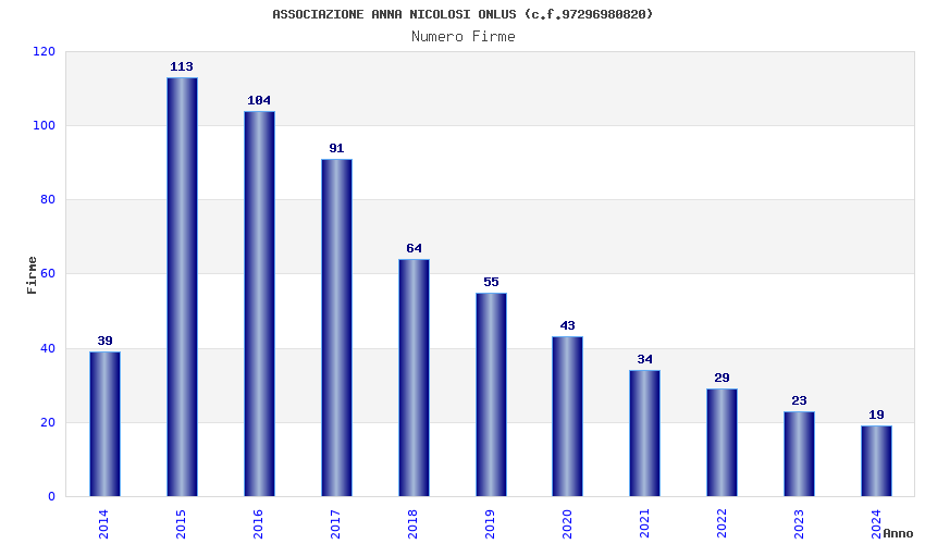 | Anno | Firme | Importi | Media | Naz. | Reg. | Prov. | Comu. |