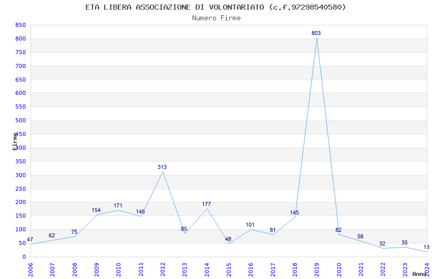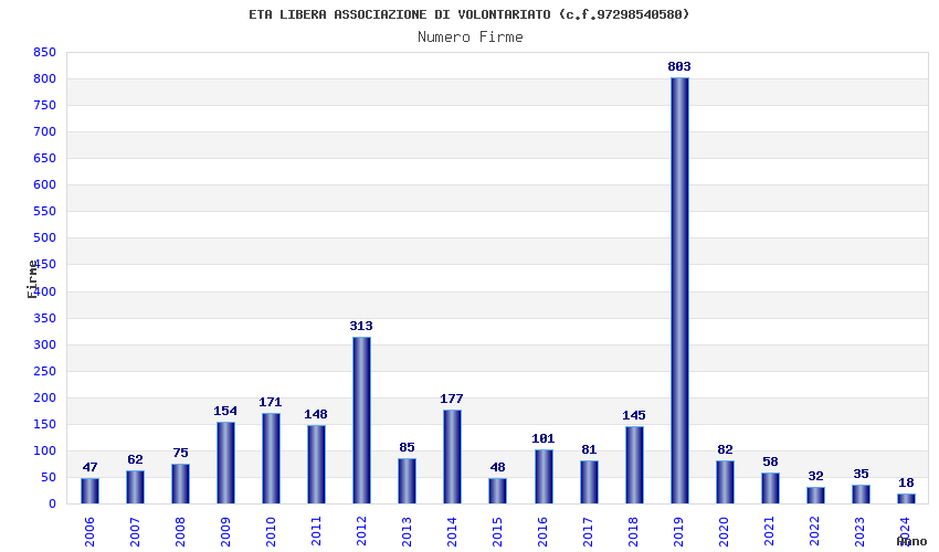| Anno | Firme | Importi | Media | Naz. | Reg. | Prov. | Comu. |