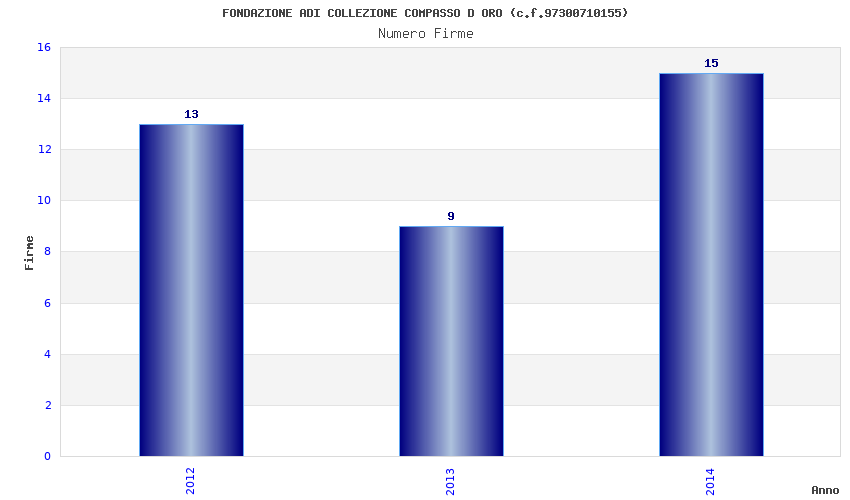 | Anno | Firme | Importi | Media | Naz. | Reg. | Prov. | Comu. |