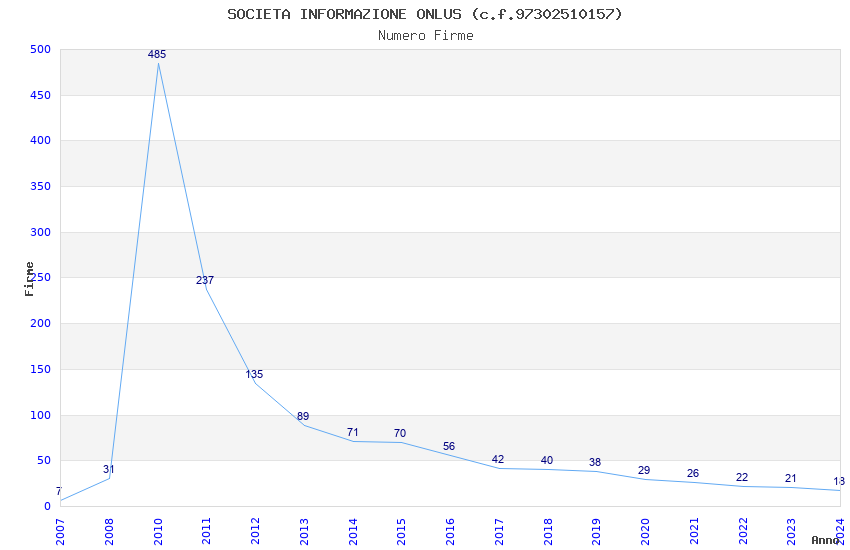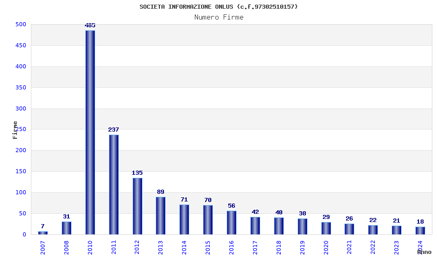 | Anno | Firme | Importi | Media | Naz. | Reg. | Prov. | Comu. |