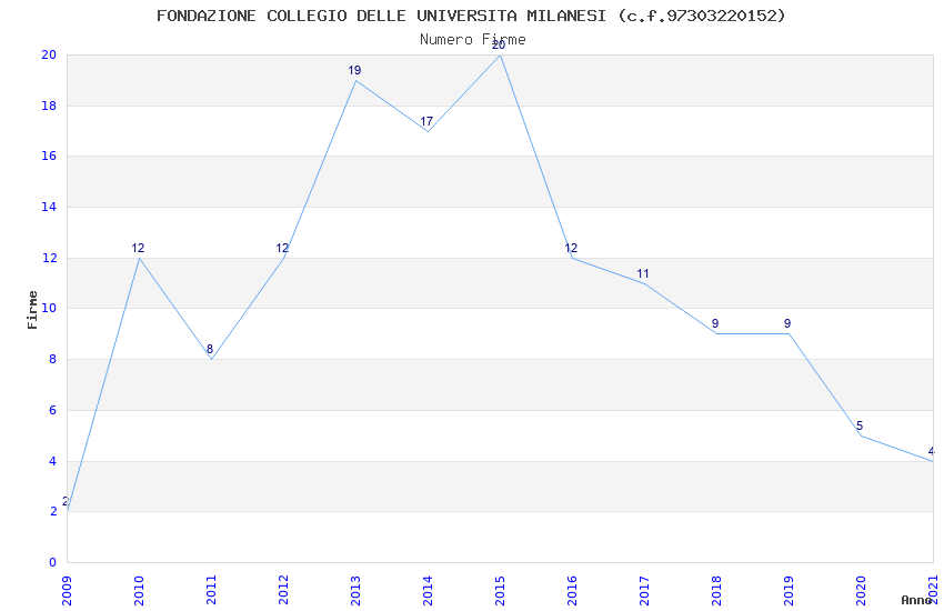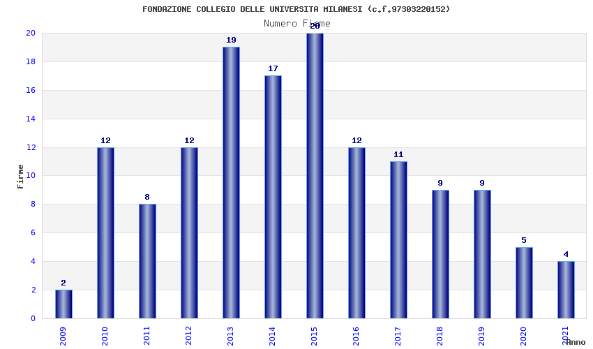| Anno | Firme | Importi | Media | Naz. | Reg. | Prov. | Comu. |