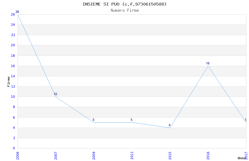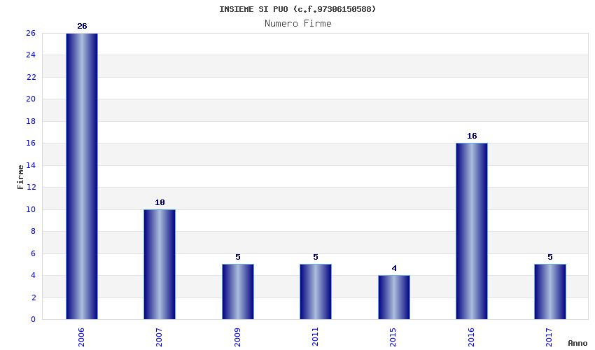 | Anno | Firme | Importi | Media | Naz. | Reg. | Prov. | Comu. |