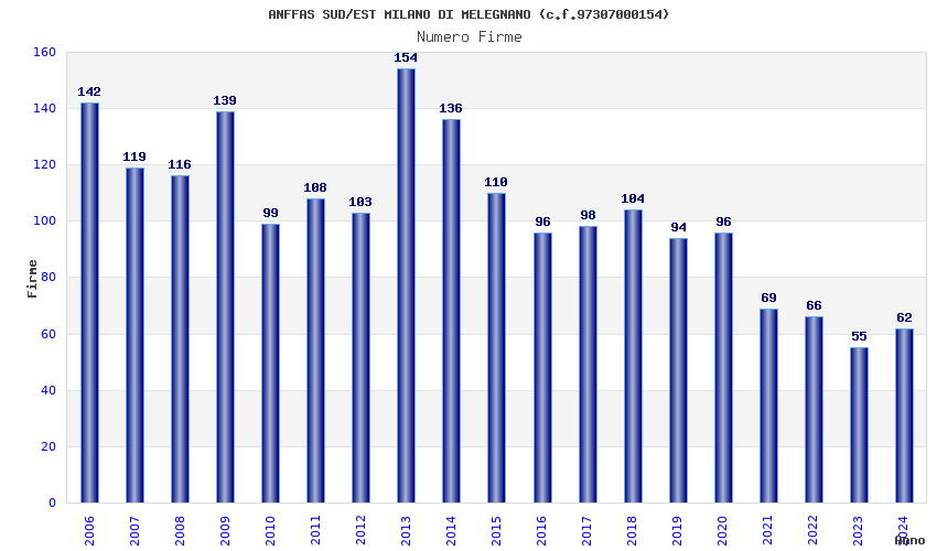 | Anno | Firme | Importi | Media | Naz. | Reg. | Prov. | Comu. |