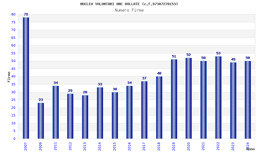 | 2024 | 50 | 2.019,78 | 40,40 | 23.853 | 5.040 | 1.799 | 13 |