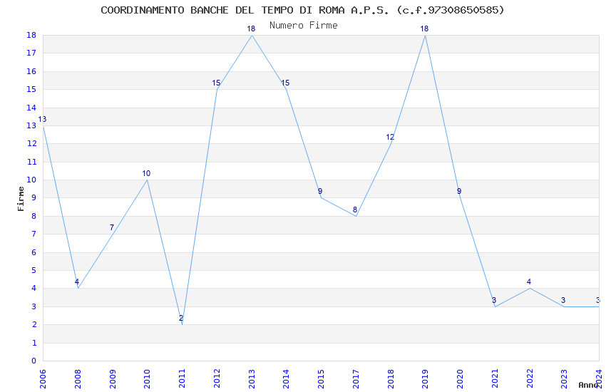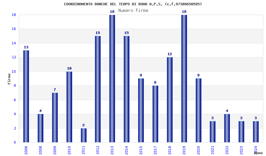 | Anno | Firme | Importi | Media | Naz. | Reg. | Prov. | Comu. |