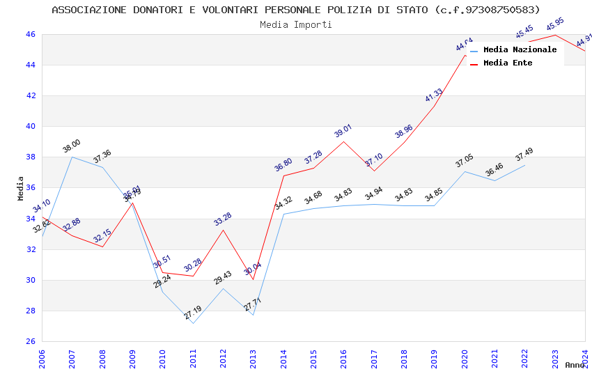 | Anno | Firme | Importi | Media | Naz. | Reg. | Prov. | Comu. |