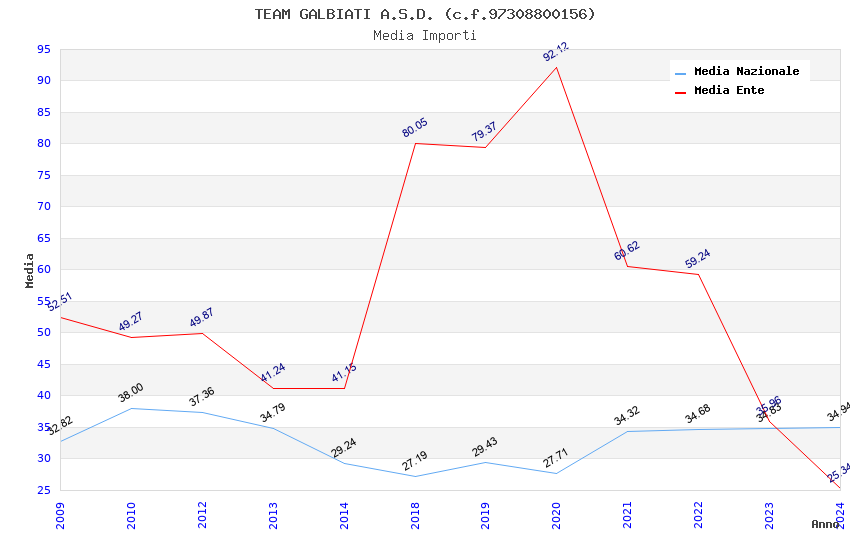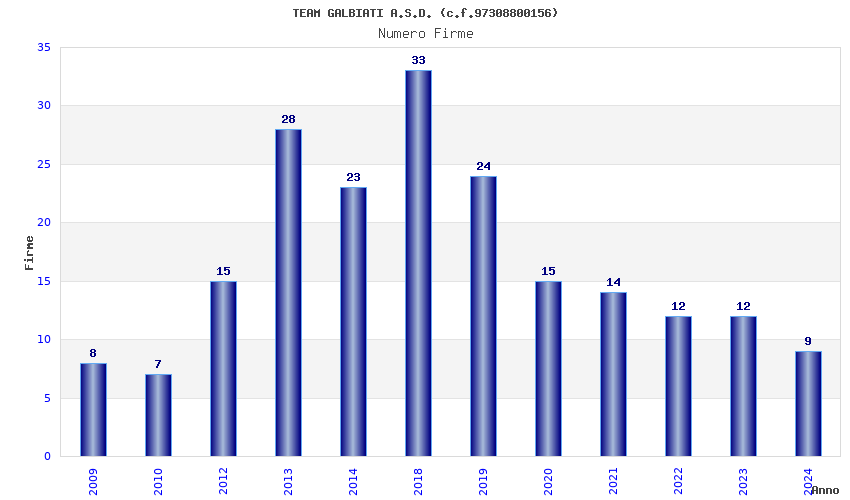| Anno | Firme | Importi | Media | Naz. | Reg. | Prov. | Comu. |