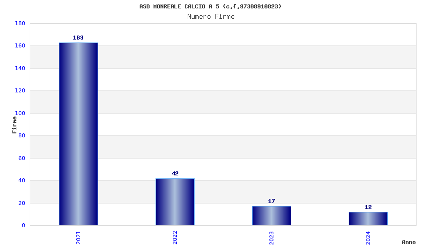 | Anno | Firme | Importi | Media | Naz. | Reg. | Prov. | Comu. |