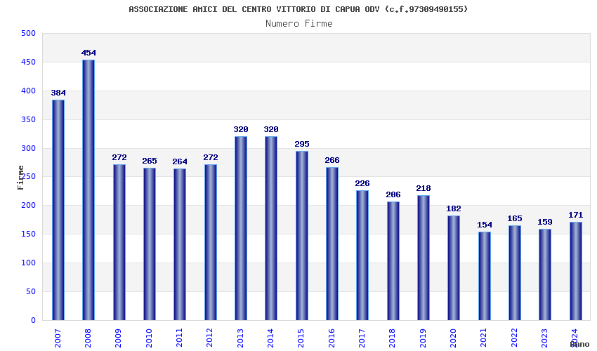 | 2008 | 454 | 17.580,96 | 38,72 | 2.384 | 627 | 330 | 265 |