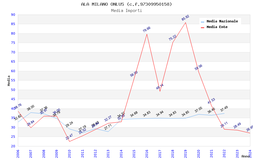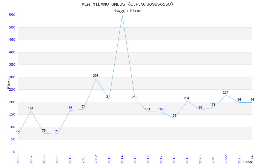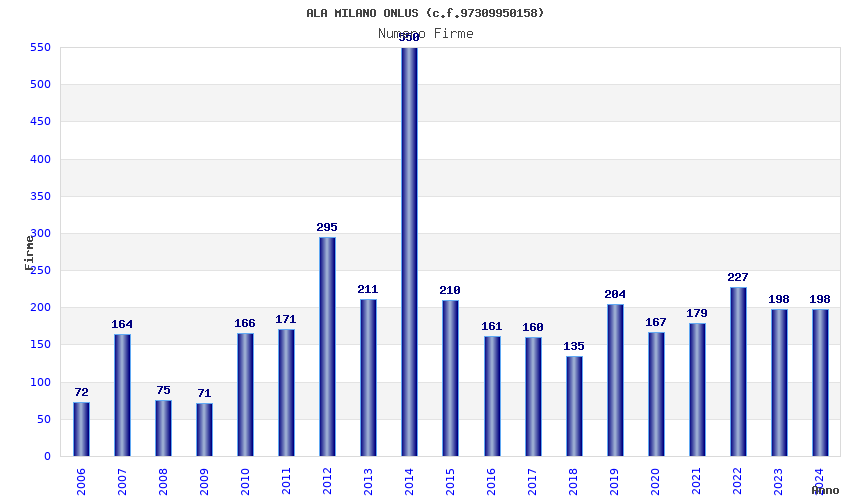 | Anno | Firme | Importi | Media | Naz. | Reg. | Prov. | Comu. |