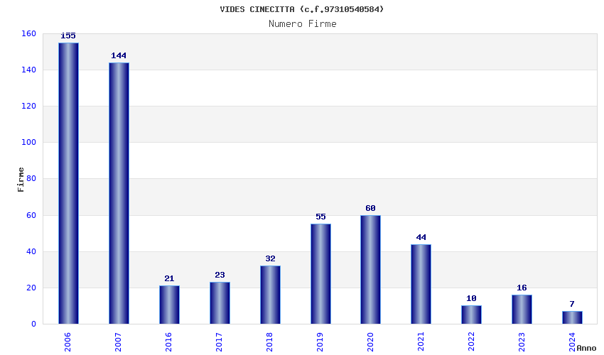 | Anno | Firme | Importi | Media | Naz. | Reg. | Prov. | Comu. |