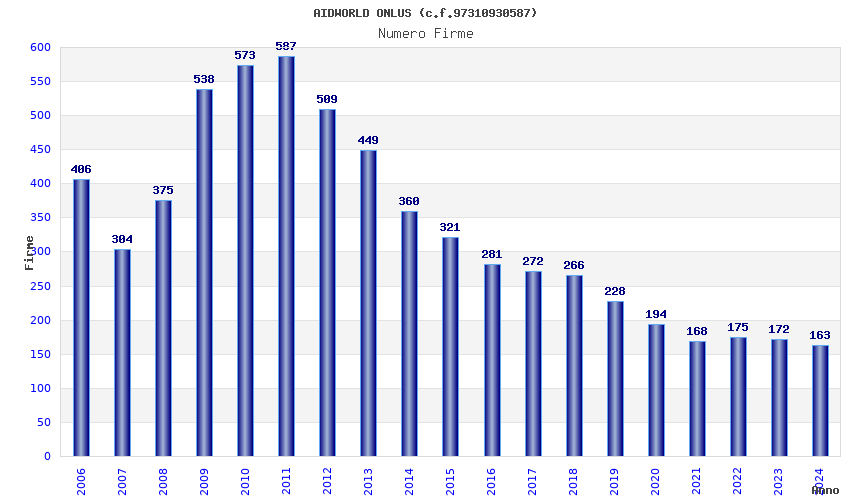 | Anno | Firme | Importi | Media | Naz. | Reg. | Prov. | Comu. |