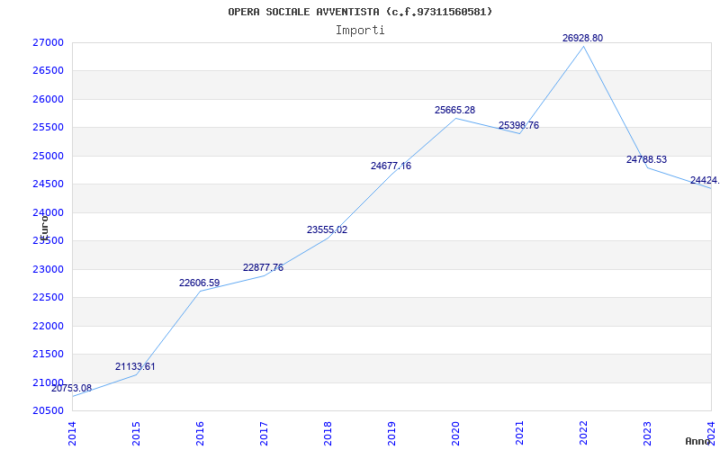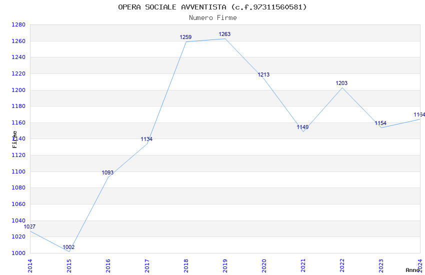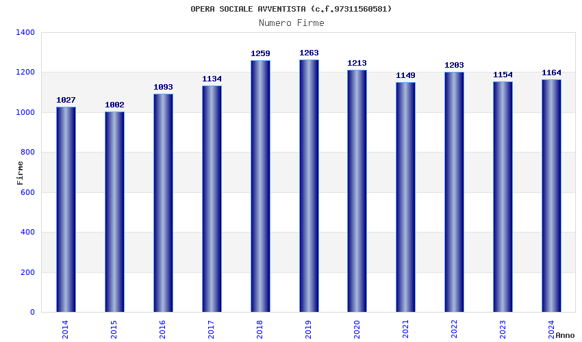 | Anno | Firme | Importi | Media | Naz. | Reg. | Prov. | Comu. |