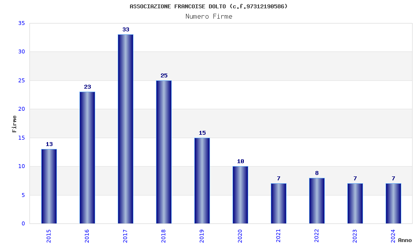 | Anno | Firme | Importi | Media | Naz. | Reg. | Prov. | Comu. |