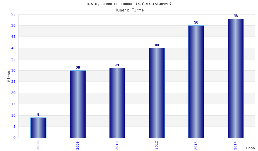 | Anno | Firme | Importi | Media | Naz. | Reg. | Prov. | Comu. |