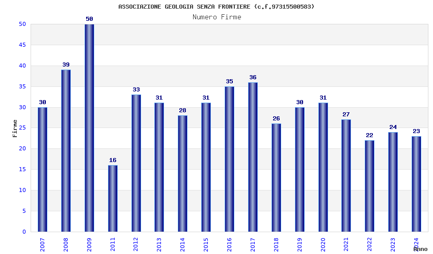 | Anno | Firme | Importi | Media | Naz. | Reg. | Prov. | Comu. |