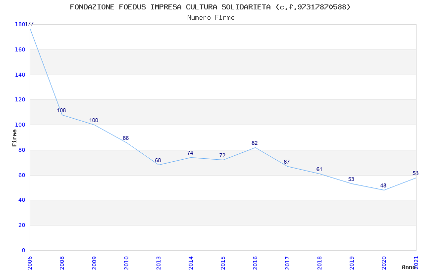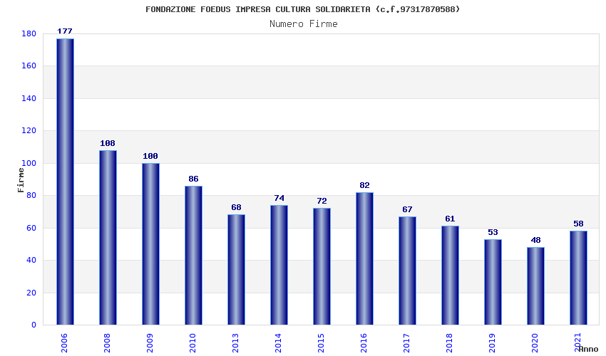| Anno | Firme | Importi | Media | Naz. | Reg. | Prov. | Comu. |