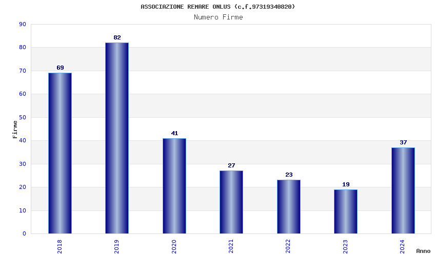 | Anno | Firme | Importi | Media | Naz. | Reg. | Prov. | Comu. |