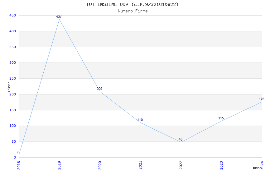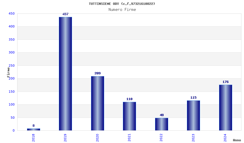 | Anno | Firme | Importi | Media | Naz. | Reg. | Prov. | Comu. |