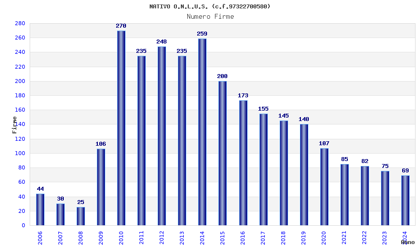 | Anno | Firme | Importi | Media | Naz. | Reg. | Prov. | Comu. |