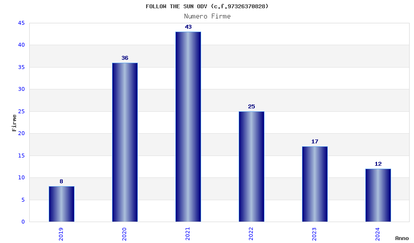 | Anno | Firme | Importi | Media | Naz. | Reg. | Prov. | Comu. |