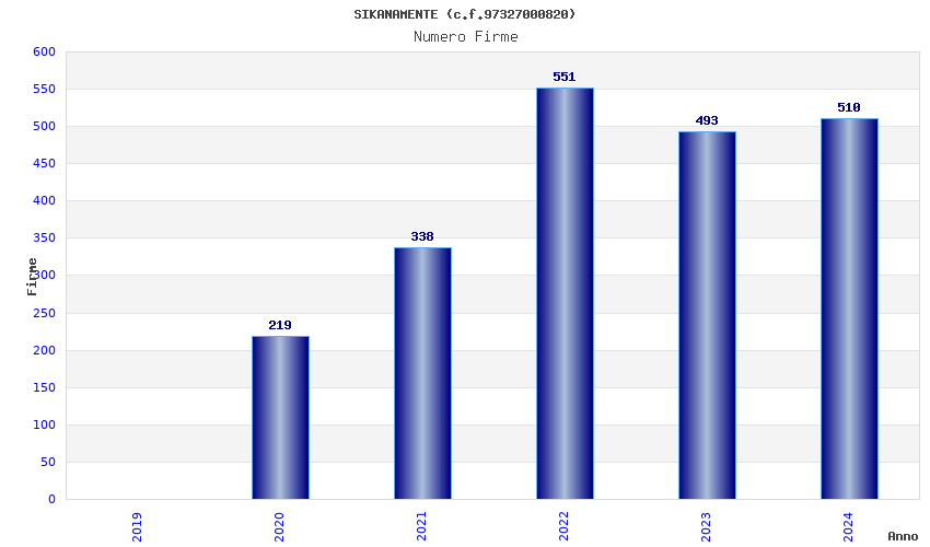 | Anno | Firme | Importi | Media | Naz. | Reg. | Prov. | Comu. |