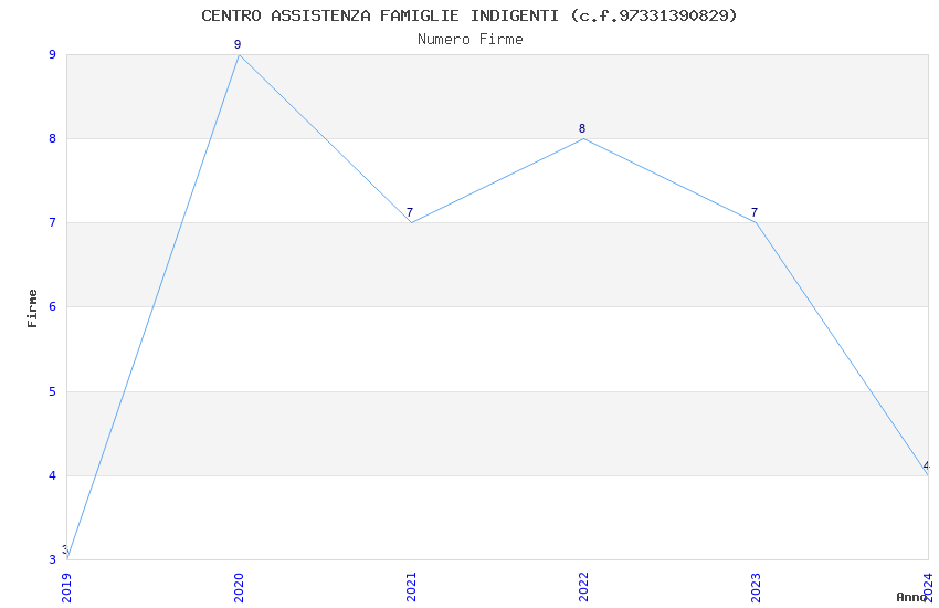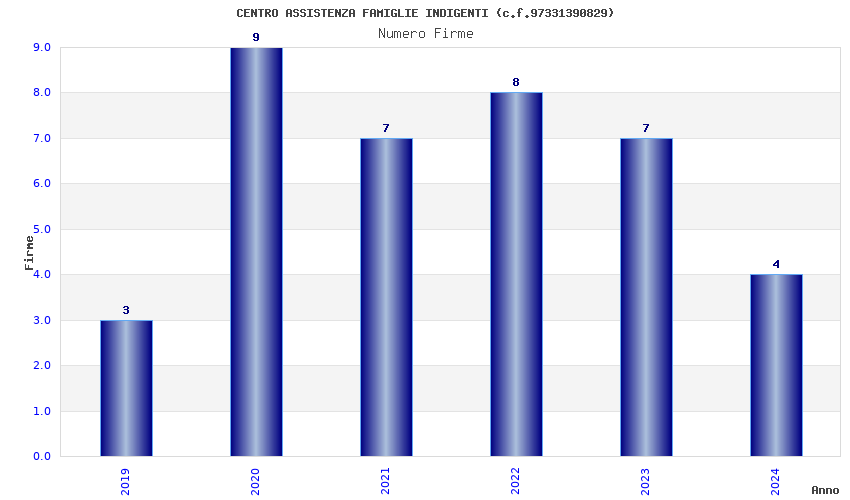 | Anno | Firme | Importi | Media | Naz. | Reg. | Prov. | Comu. |