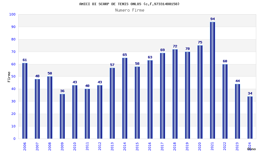 | Anno | Firme | Importi | Media | Naz. | Reg. | Prov. | Comu. |