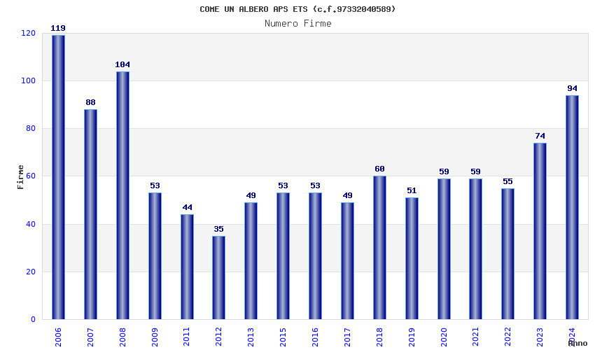 Anno Firme Importi Media Naz. Reg. Prov. Comu.