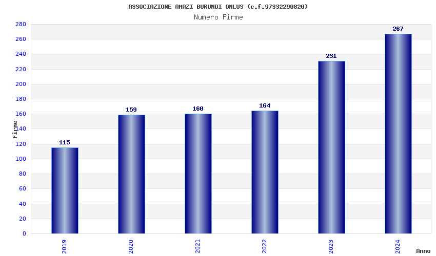 | Anno | Firme | Importi | Media | Naz. | Reg. | Prov. | Comu. |