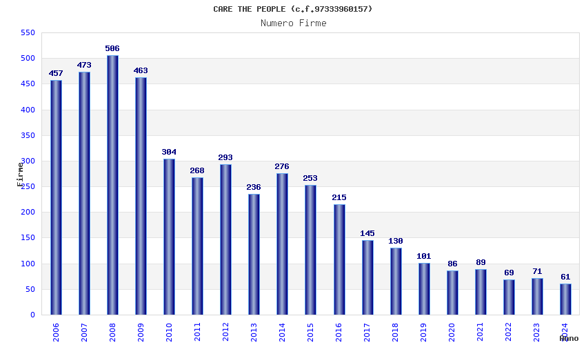 | Anno | Firme | Importi | Media | Naz. | Reg. | Prov. | Comu. |