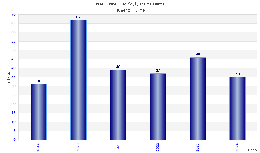 | Anno | Firme | Importi | Media | Naz. | Reg. | Prov. | Comu. |