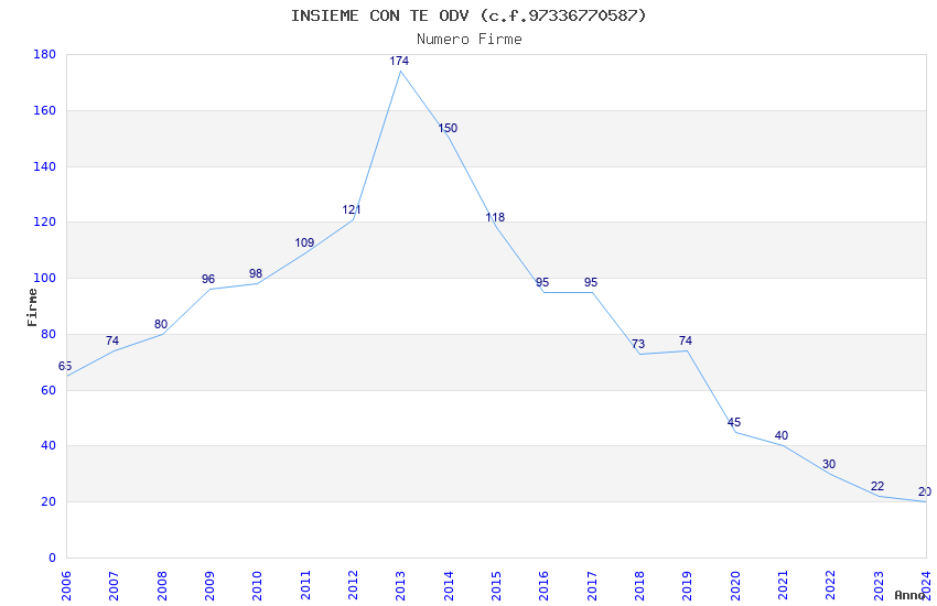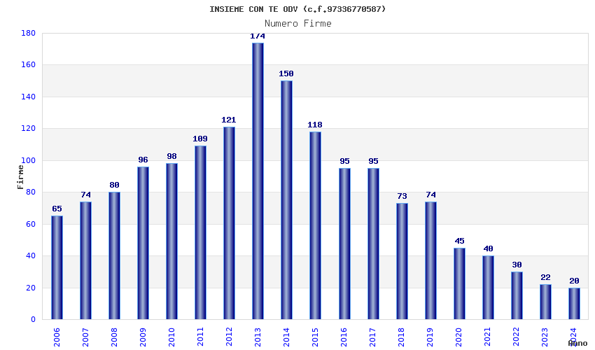 | Anno | Firme | Importi | Media | Naz. | Reg. | Prov. | Comu. |