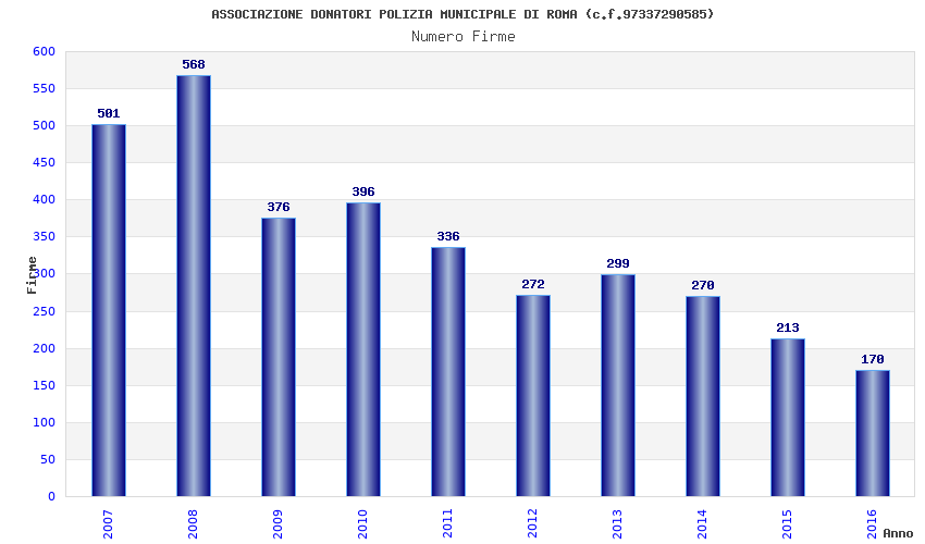 | Anno | Firme | Importi | Media | Naz. | Reg. | Prov. | Comu. |