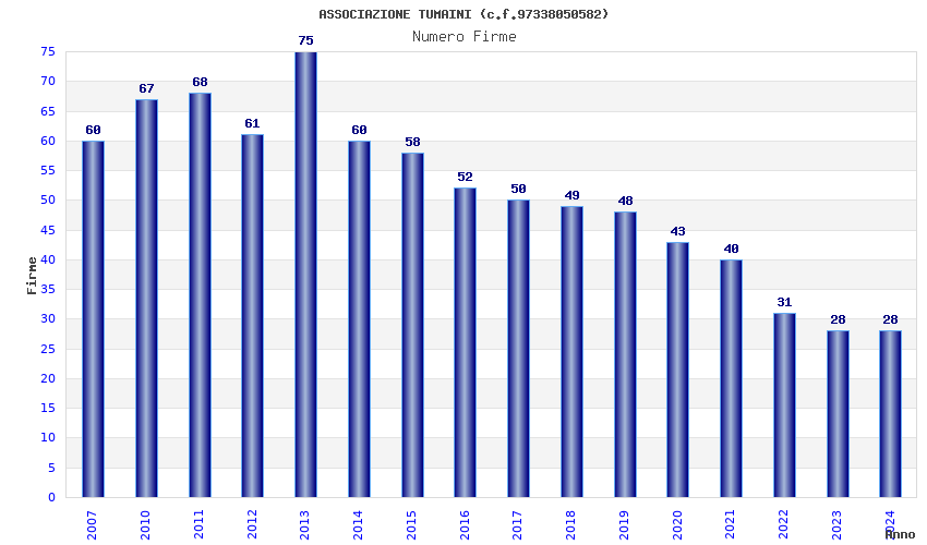| 2013 | 75 | 2.400,00 | 32,00 | 16.250 | 1.733 | 1.498 | 1.268 |