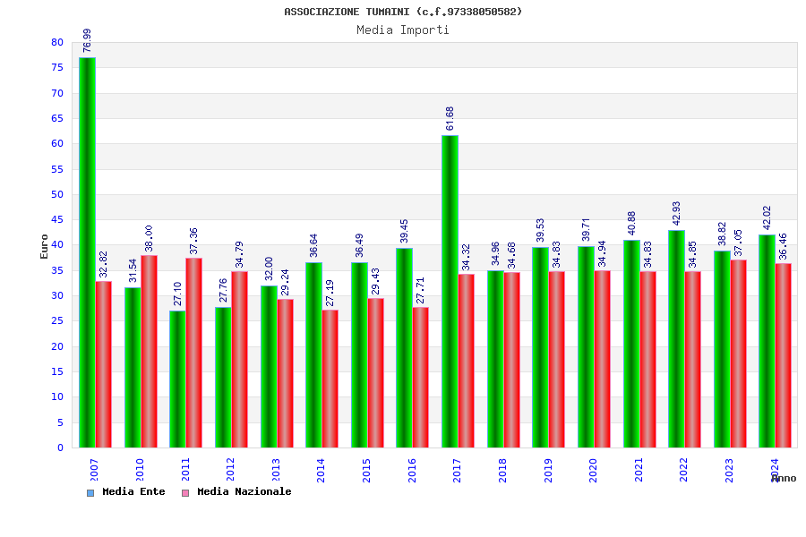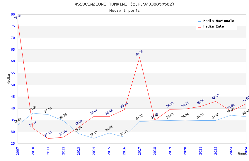 | Anno | Firme | Importi | Media | Naz. | Reg. | Prov. | Comu. |