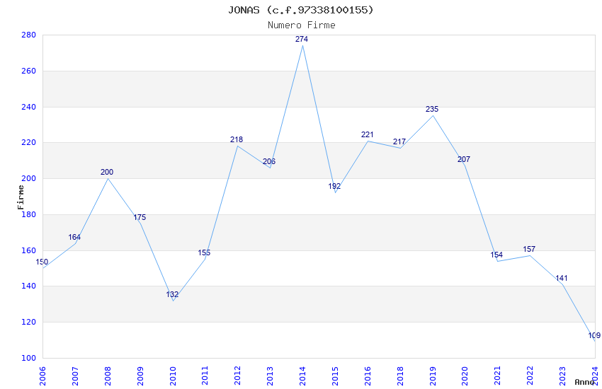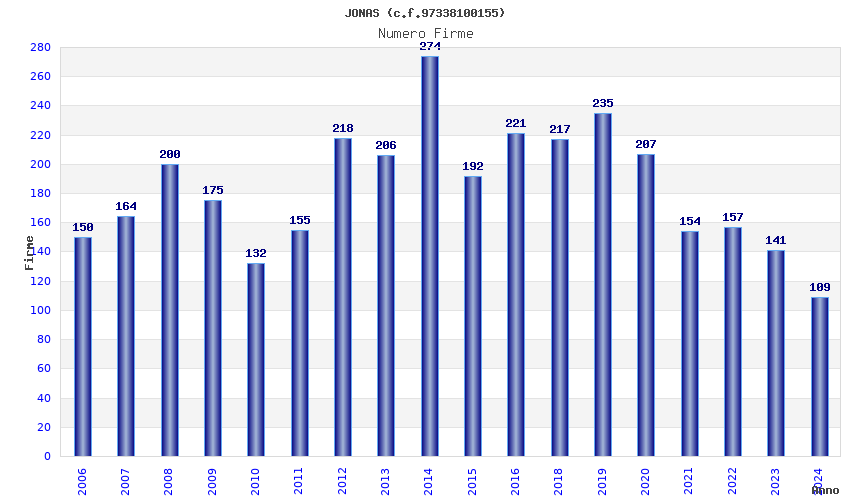 | Anno | Firme | Importi | Media | Naz. | Reg. | Prov. | Comu. |